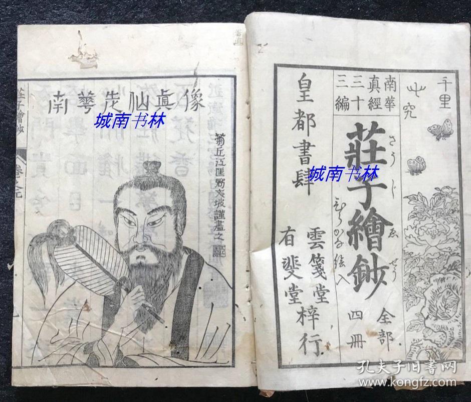 稀本 江戸天明4年初刷 庄子绘抄4巻全 木版