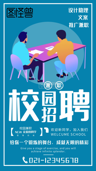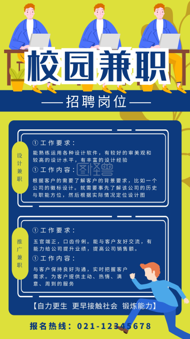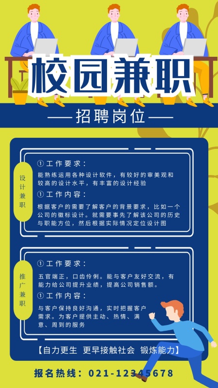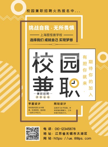橙黄色简约风校园招聘大学生兼职宣传海报