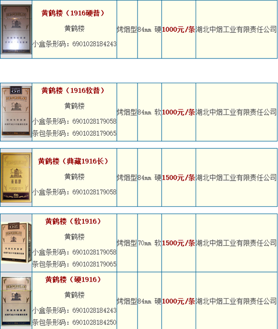黄鹤楼1916一条多少钱?黄鹤楼1916香烟价格大全