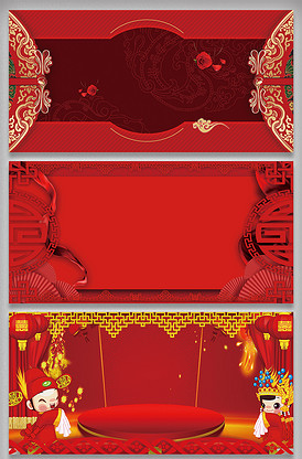 结婚红色中国风婚庆展板背景PSD
