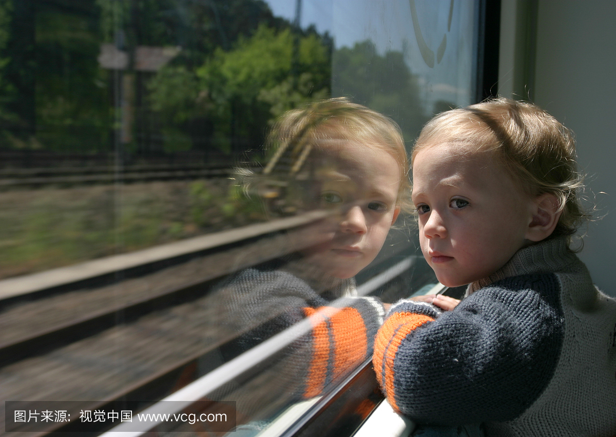 窗户,儿童,火车,背面视角