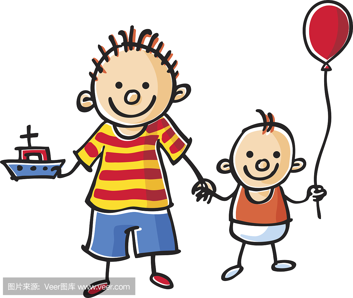 正面视角,绘画插图,形状,手牵手