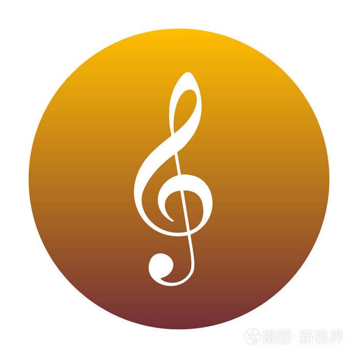 音乐小提琴谱号标记。G-谱号。高音谱号。在圆的白色图标