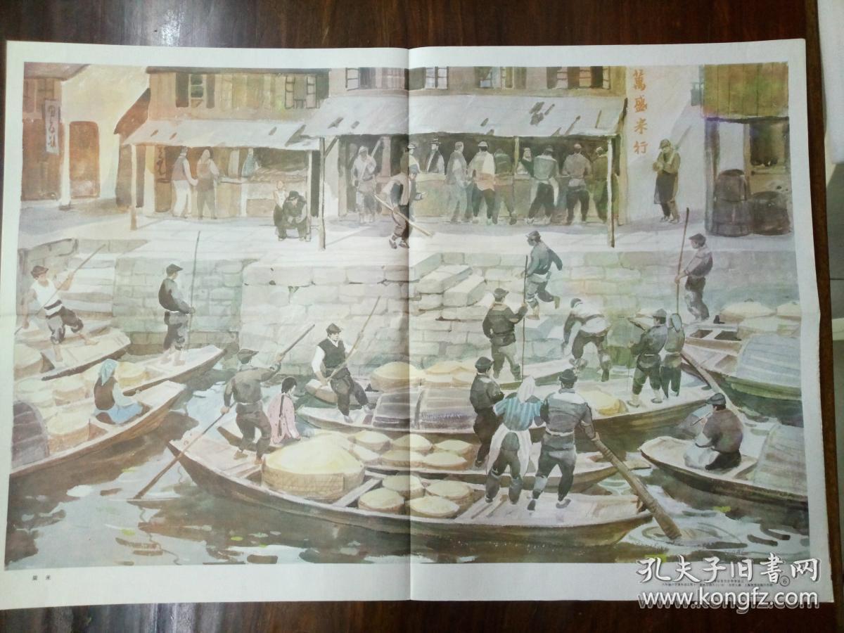 老画家石奇人根据叶圣陶的同名散文创作的教学挂图:粜米(此为对开画,宽76厘米,高52厘米;《粜米》本文是从叶圣陶的名著《多收了三五斗》中节选的,讲的是旧中国的农民丰收后去粜米,虽然米价跌了,却不得不忍痛贱卖的事;老画家用巧手和笔,通过此图,把旧中国社会之黑暗及农民的苦难栩栩如生的予以刻画并展现出来,收藏与阅读价值并重)