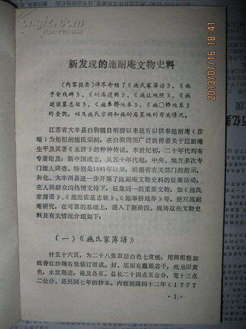 施耐庵研究(大丰县文史资料 第三辑。书中