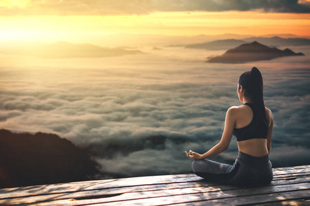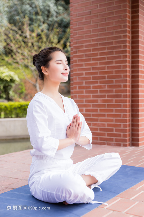 冥想的女人图片-在空气清新的户外练习瑜伽冥想的年轻美女素材-高清图片