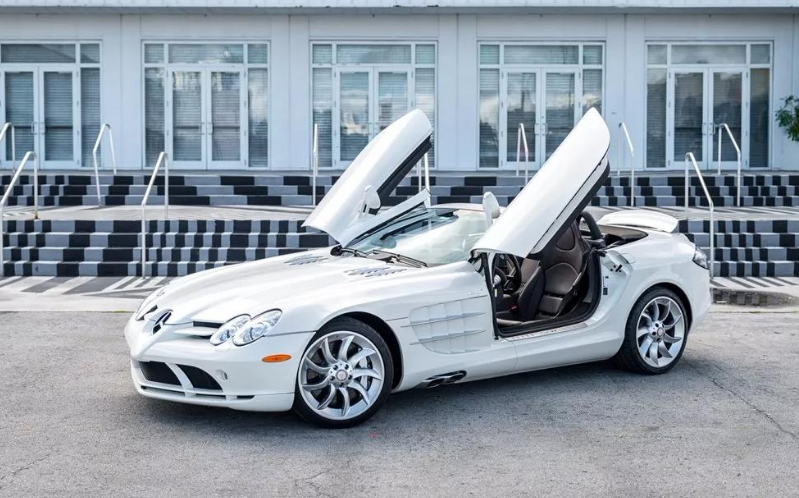 挂着迈凯伦标志的奔驰四眼跑车,侧面排气