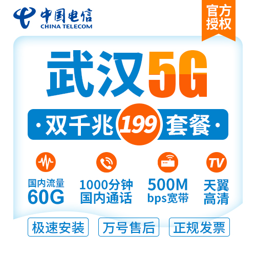 【5G双千兆】湖北武汉电信宽带500M光纤