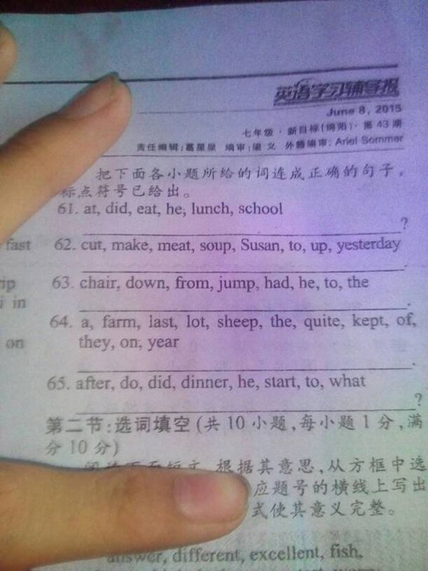 七年级英语连词成句