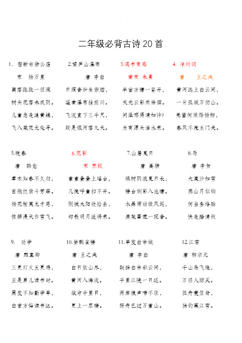 二年级必背古诗带拼音二年级古诗大全拼音版