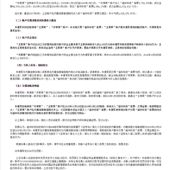 被罚没5亿的牛散朱康军:玩内幕交易巨亏