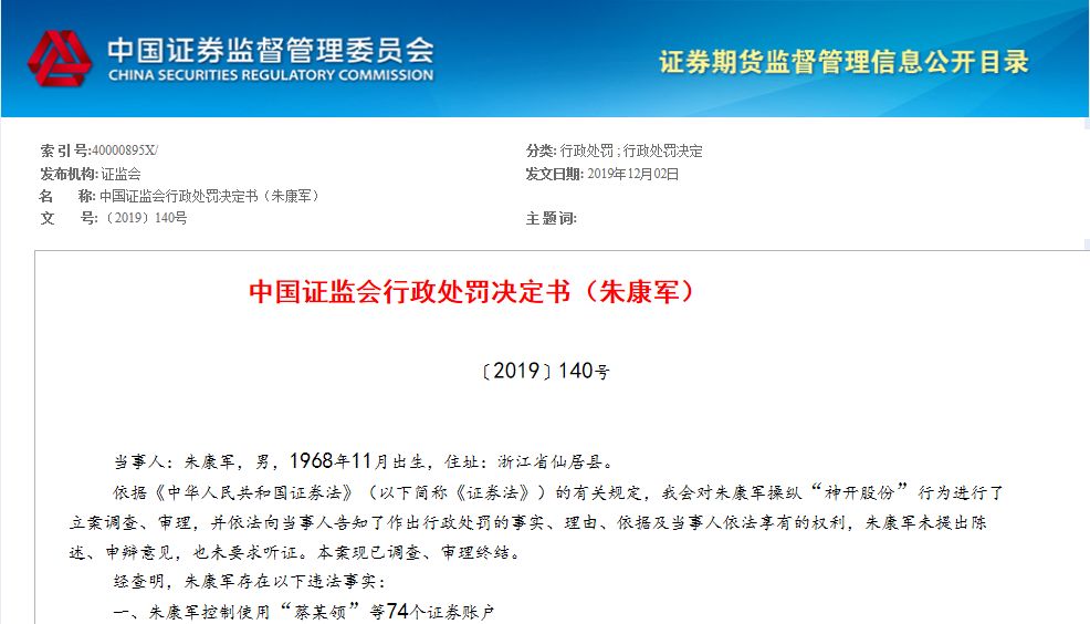 牛散坐庄却倒亏4亿!惯犯朱康军又被罚