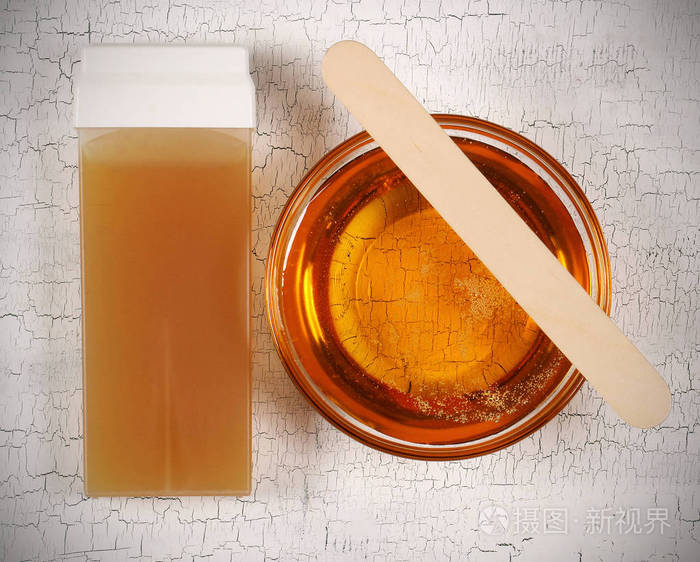 桌上有脱毛谎言的蜡蜂蜜是一个地方题词