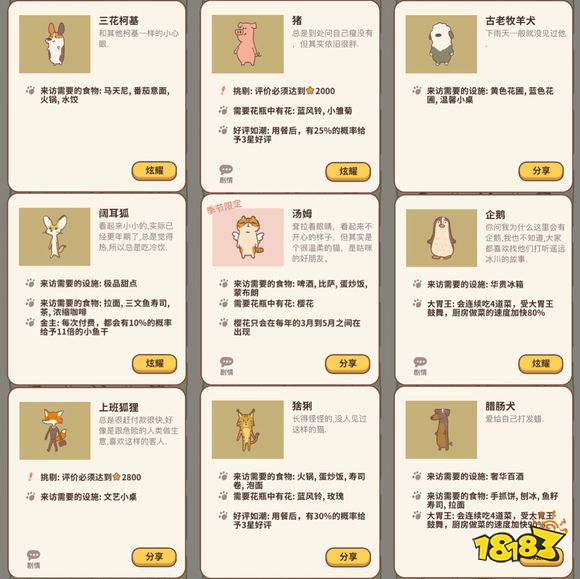 动物餐厅全客人解锁攻略