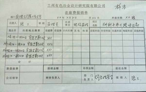差旅费报销单规范填写格式参照