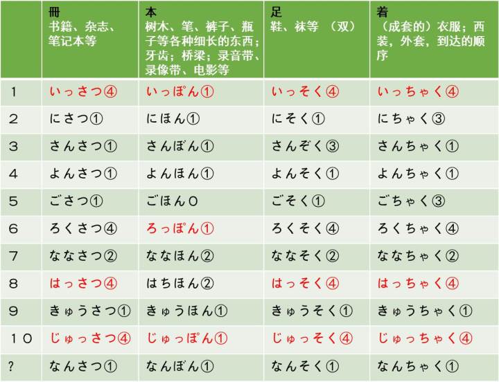 日语量词读音及用法列表
