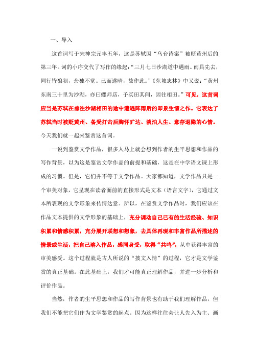《定风波·三月七日沙湖道中遇雨》苏轼