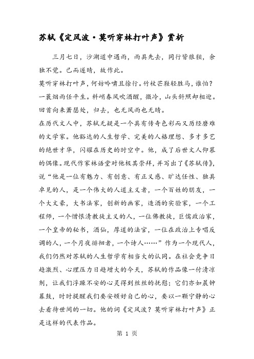 「每天一首宋词」宋·苏轼《定风波·莫听