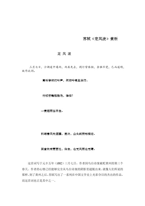 《定风波·三月七日》苏轼宋词注释翻译赏析