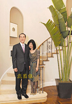 香港前政务司司长唐英年前日偕同妻子郭妤浅