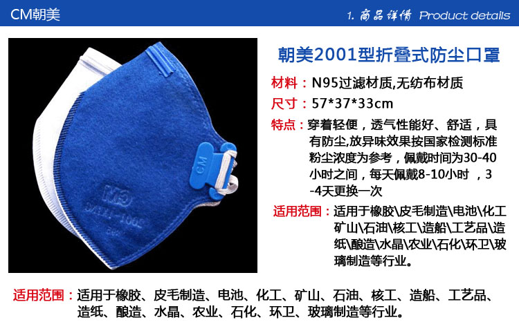 朝美防尘口罩(N95滤材)2001型 无纺布口罩