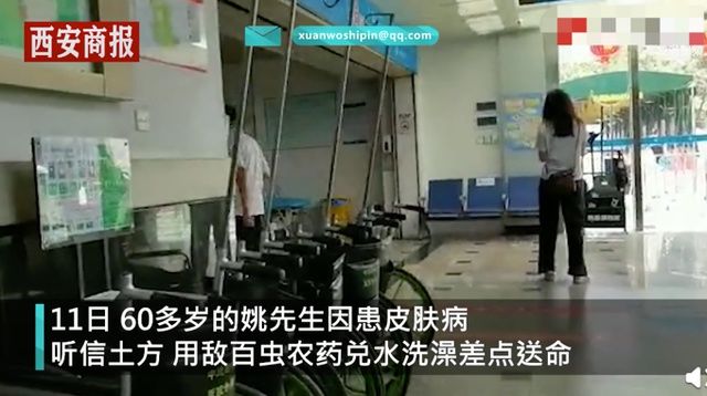 6旬大爷农药敌百虫泡澡治皮肤病!导致