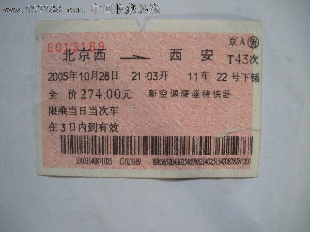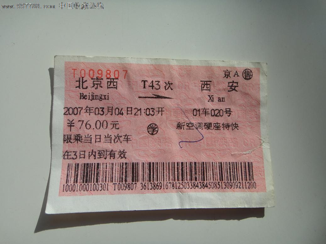 北京西-西安T43次学生票,火车票,特快\/直达