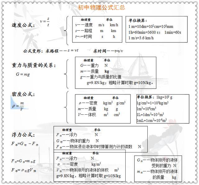 初中物理公式及知识点汇总衡中学霸的高效