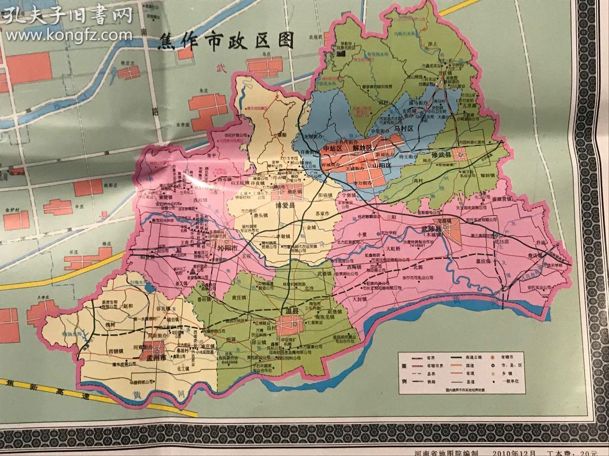 一张超大的焦作市区地图 一米左右 图上还有焦作下面各县城地图 品相新 折叠邮寄