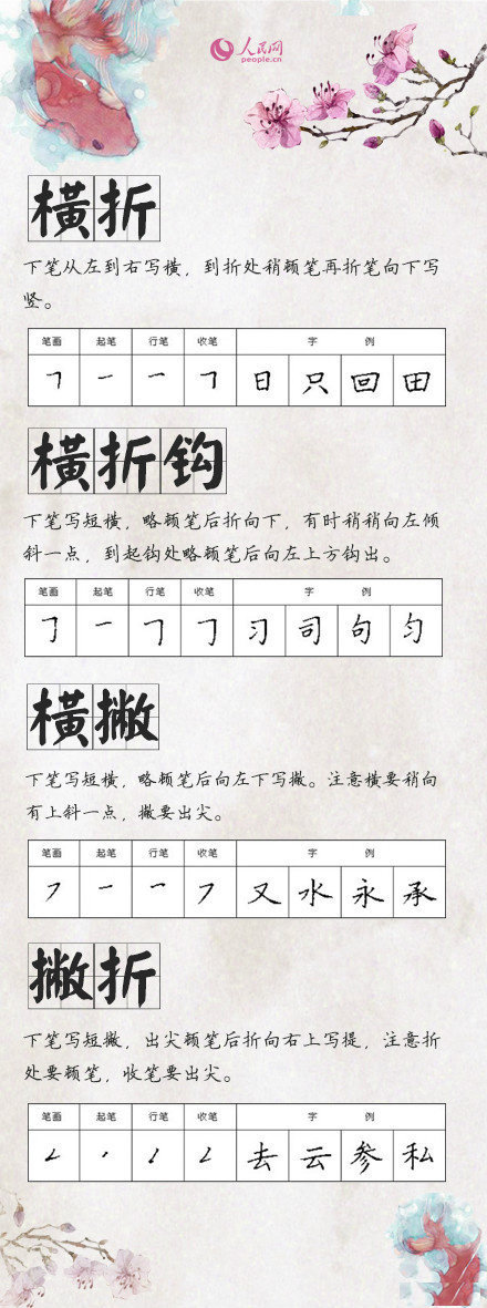 32个常用汉字笔画名称表(拼音版)