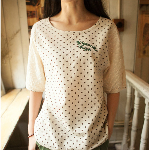字母刺绣点点休闲上衣中袖T恤女0537 图片