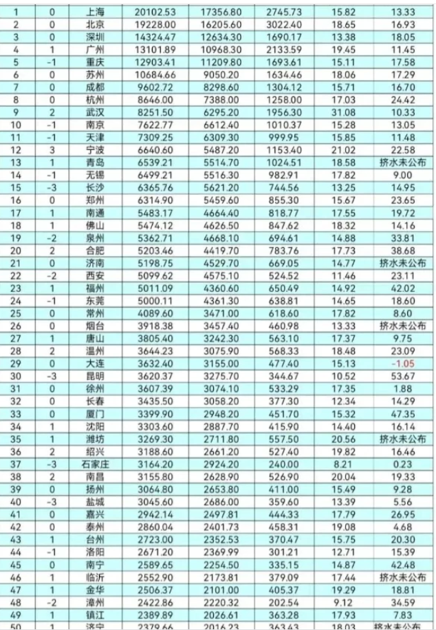 2021年上半年全国GDP50强城市排名,南宁