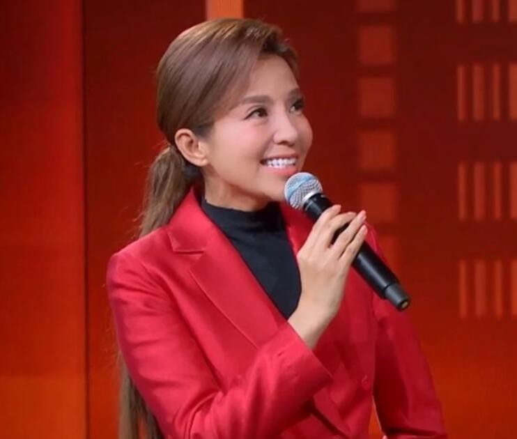 朱迅气质真好,穿中国红西装亮相节目太