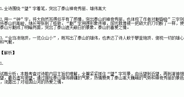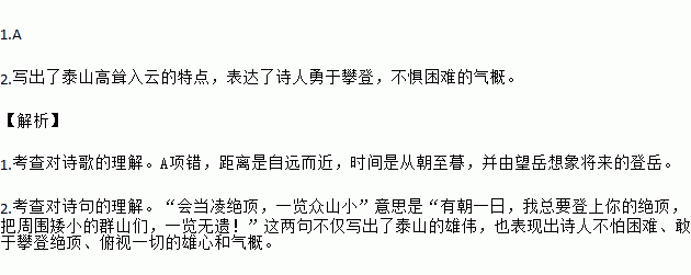 眦入归鸟.会当凌绝顶.一览众山小.1.全诗