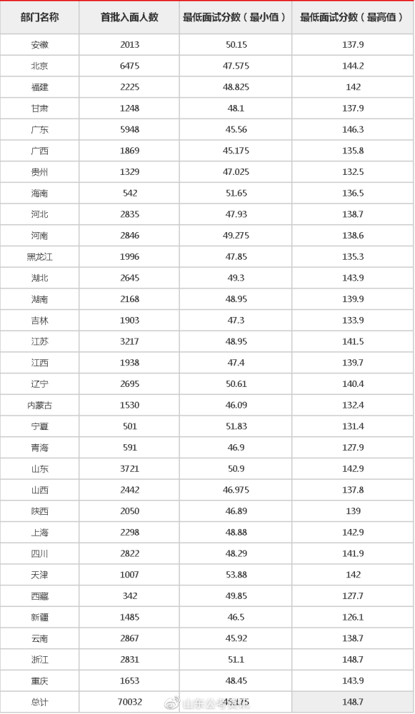 最高148.7分!21国考各地区进面分数