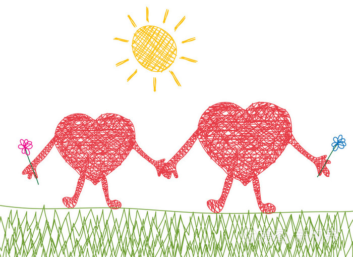 两个心中有爱插画