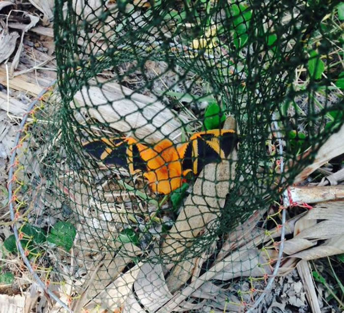泰国香蕉园濒临绝种的小彩蝠从树上掉下来