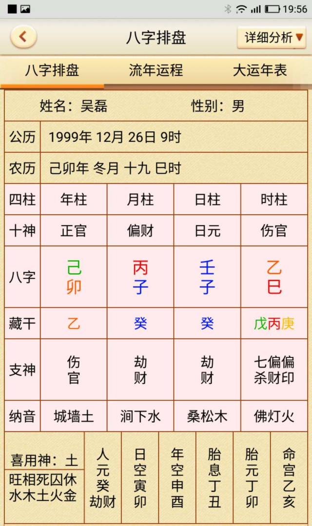 四柱八字排盘喜用神算命免费