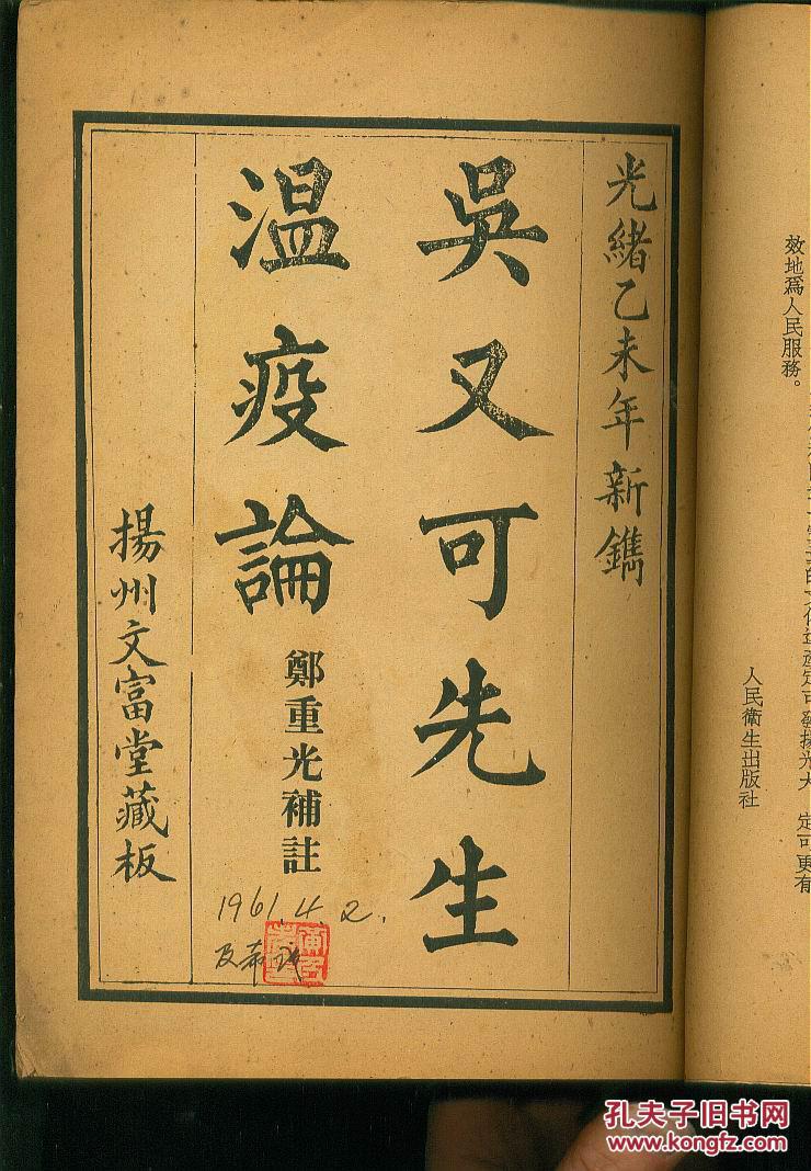 瘟疫论补注(55年1版1印影印本)