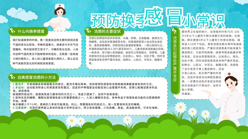 绿色预防换季感冒展板