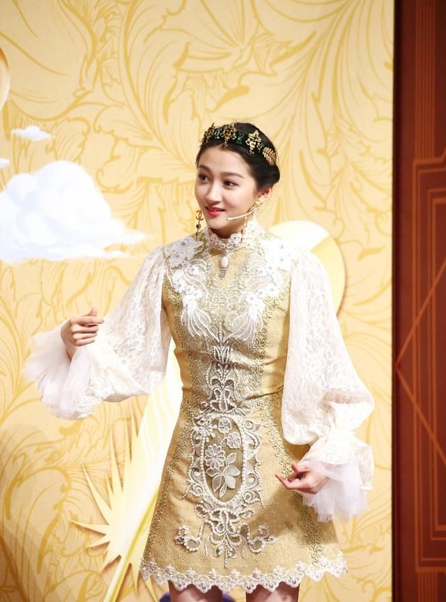 风好惊艳!一身金色刺绣裙,大大方方秀长腿