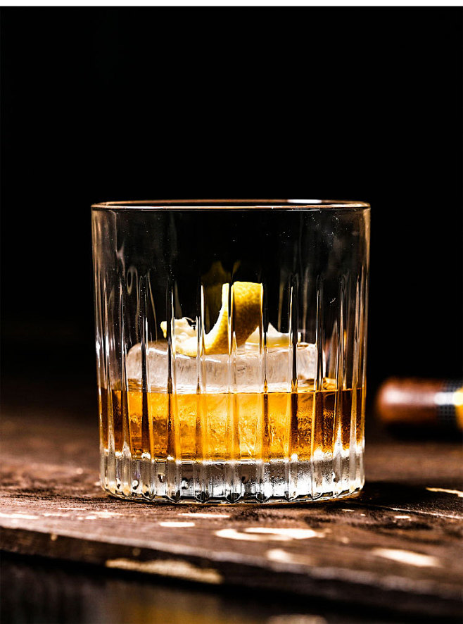 日式条纹威士忌杯 酒吧专用古典鸡尾酒杯