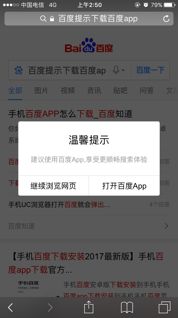 如何看待百度在手机网页搜索时推荐下载