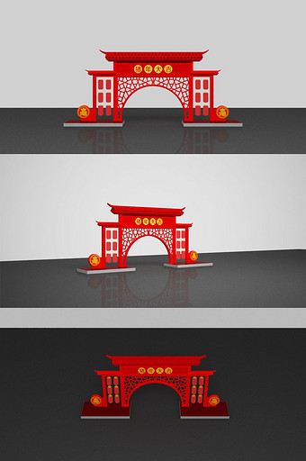 中式门楼3D模型下载