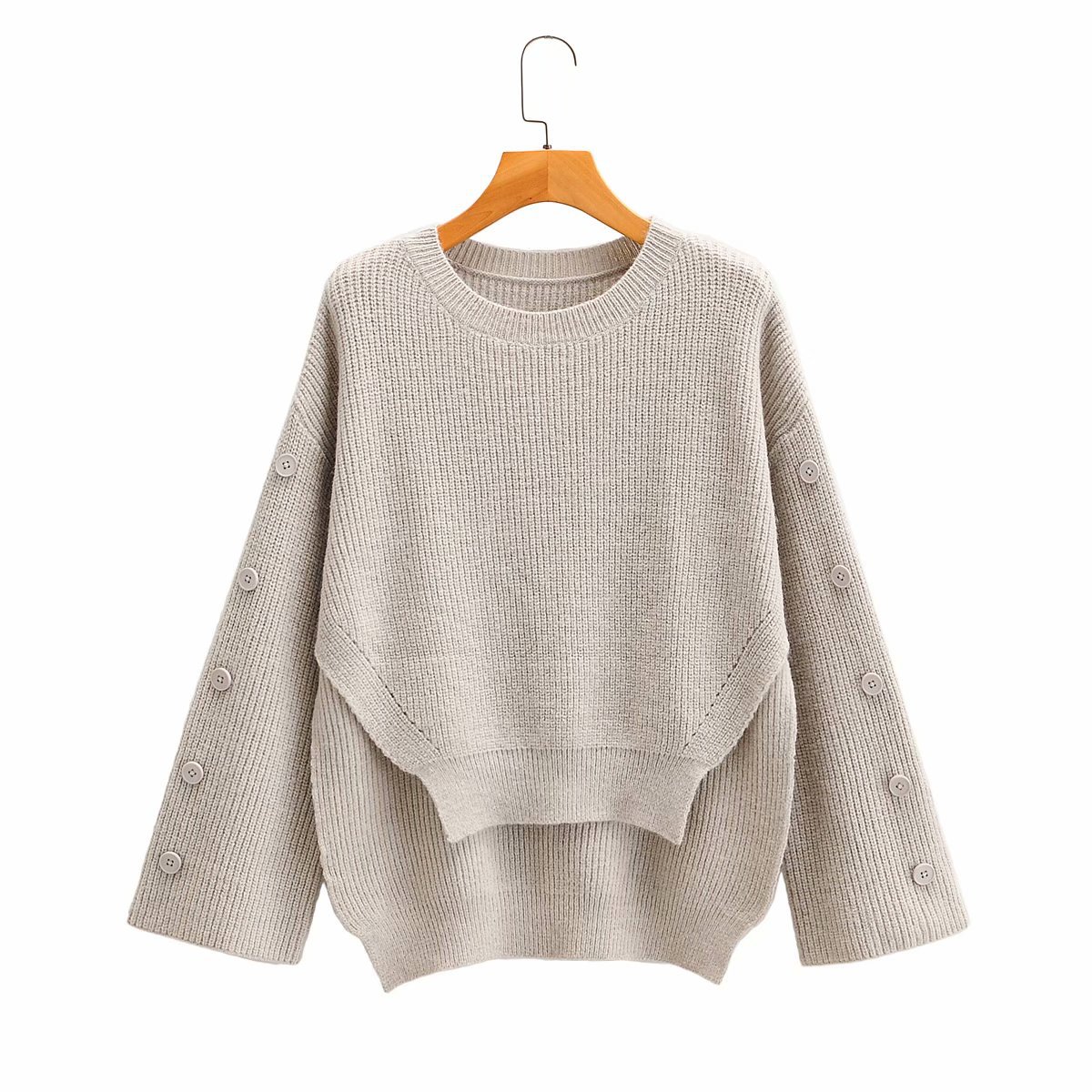 前短后长女宽松圆领针织衫毛衣QQ3-35469