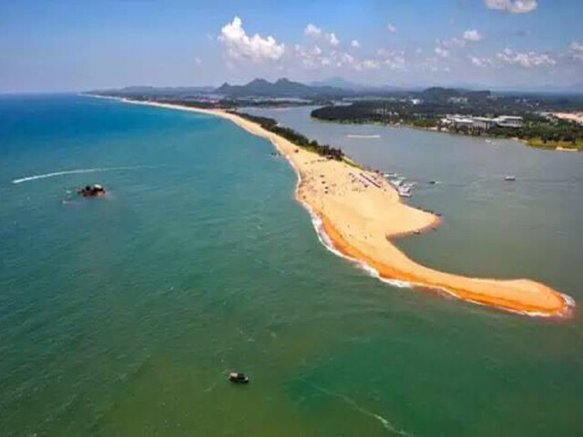 博鳌玉带滩是一条自然形成的地形狭长的沙滩半岛