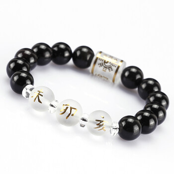 属猴鼠龙三合三奇贵人八卦天然黑曜石手链