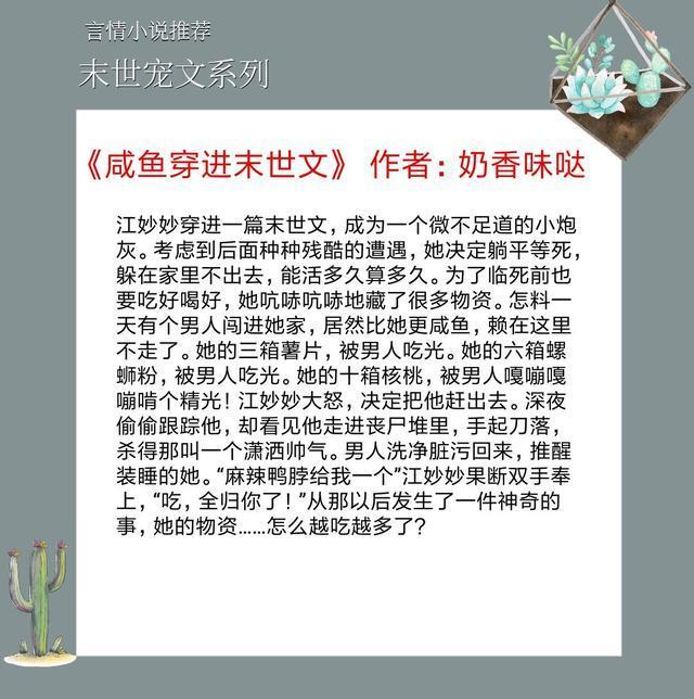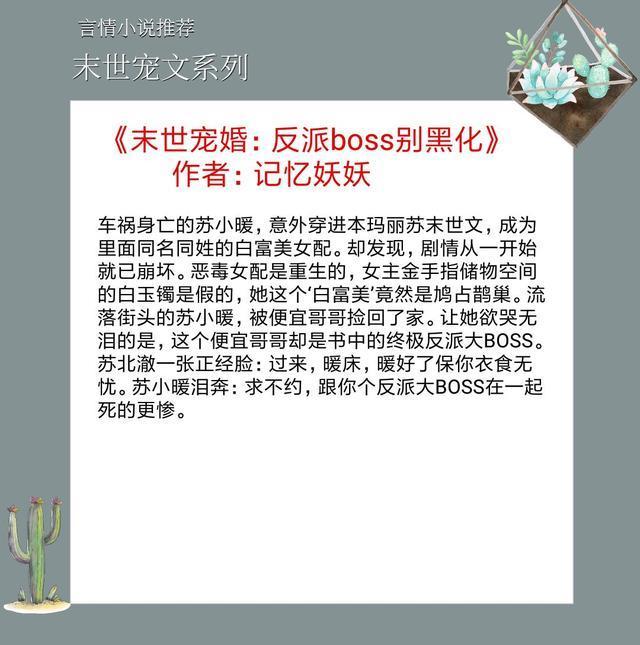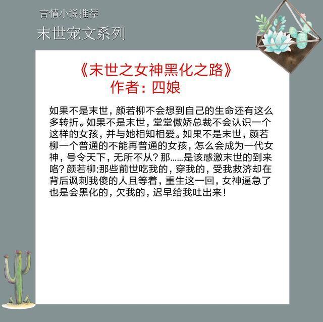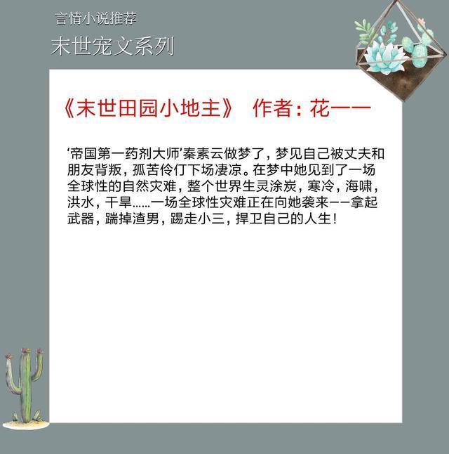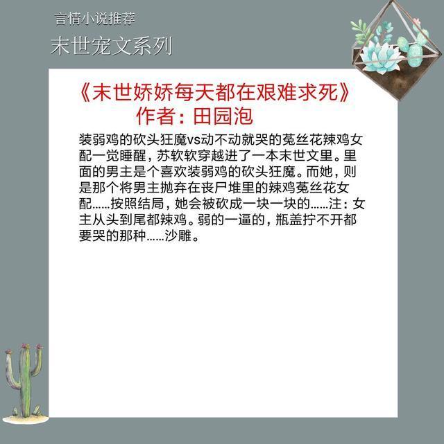 强推六本末世言情宠文,末世娇娇在线被宠,