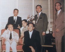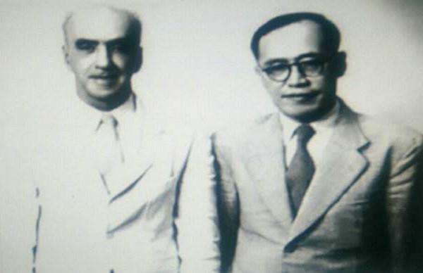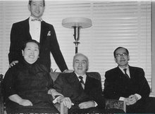 晚年的司徒雷登(中)与他的秘书傅泾波(右一)