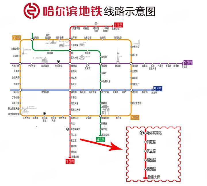 哈尔滨地铁线路全图一号线站点